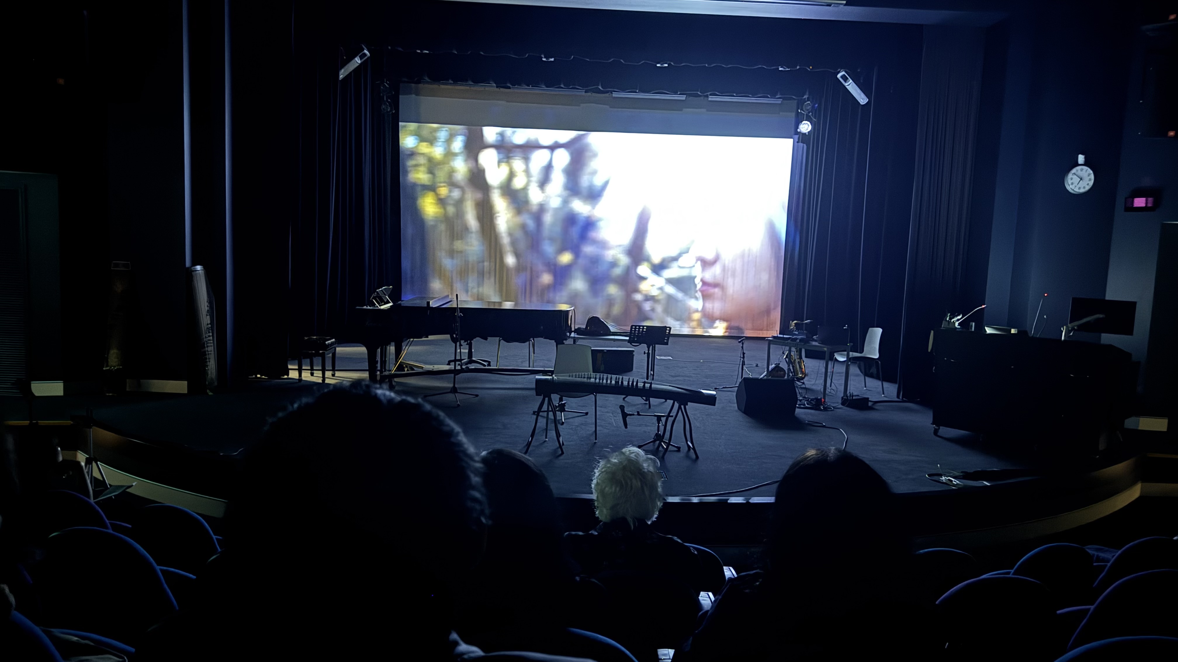 Literal breath energies rippled through the room, including with Vietnamese composer and performer, Le-Tuyen Nguyen, singing in Vietnamese in his Song of the South in duo with pianist Diana Blom. Here, there was type of vulnerability in the voice where the energy dissipated into breath-softness that touched somewhere inside your heart. Recently retired Director of Music, Dr Clare Maclean's beautiful Winnowing Light collaboration with poet Kate Fagan, featured the consummate artistry of Claire Edwardes' marimba virtuosic lightness and moody breath phrases from Jason Nobles' chalumeau low-clarinet low tones that rose from these depths like a prayer, symbolised by the long-flight pattern of Swifts' migrating flight from Korea to Australia. This sound recording was richly beautiful in detail and presence in the handling by former colleague, Dr Ian Stevenson's sound design. In my own work Gyeonggye: Border, a film about the vulnerability of passing from one world to another and healing in nature with Pedro Velasco (director of photography), Hyelim Kim, a virtuosic Korean taegŭm performer, broke the sound with her reed-membrane rasping of the sound, interspersed with Judeo-Christian glossolalia chant and Korean Buddhist Temple bowl resonances, that grew into rippling sounds throughout the entire register of the instrument, as the visual shifts from graveyard stones set in lush-green surrounding hues to gritty shots of the large transverse bamboo taegŭm-flute disappearing into light.